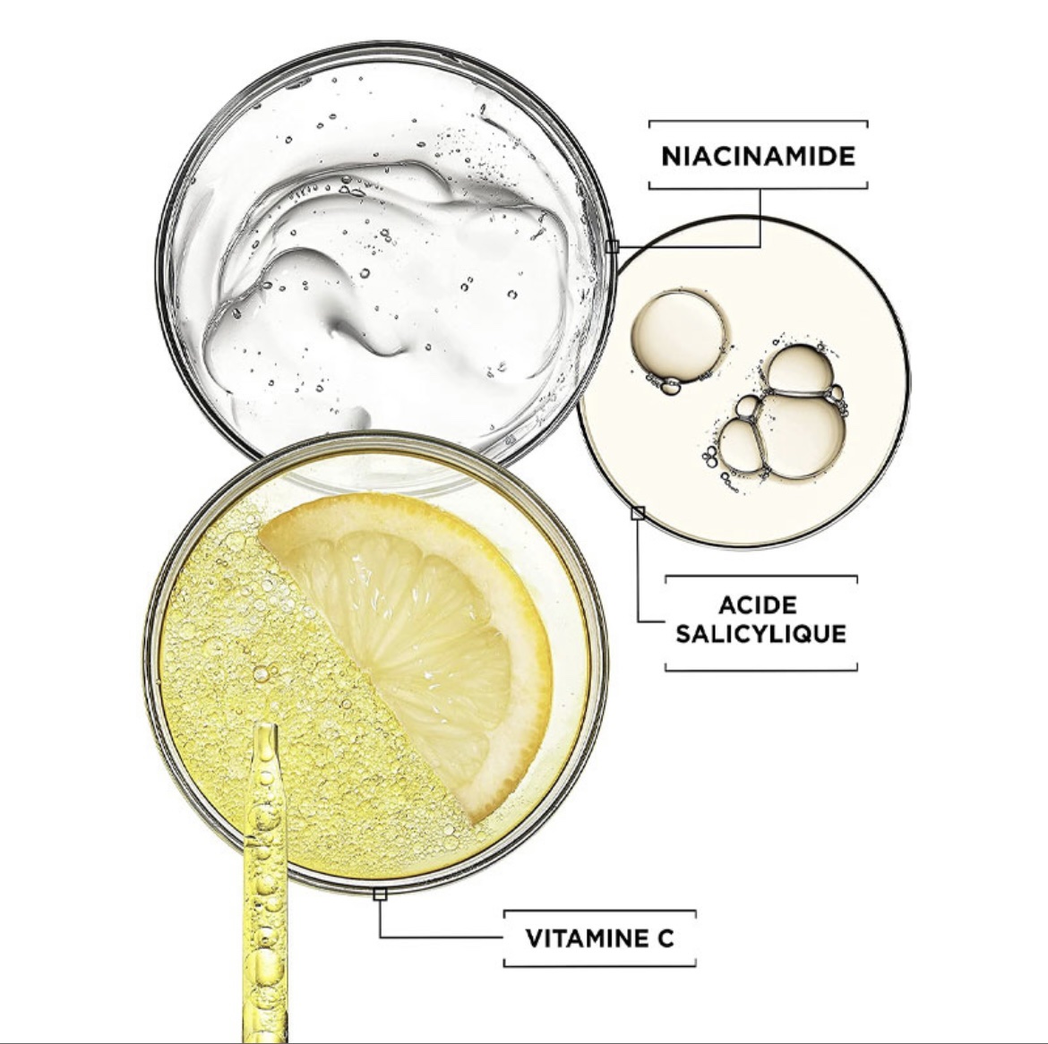Le 1er sérum anti-taches de Garnier concentré en vitamine C, en niacinamide et en acide salicylique. Il réduit efficacement les taches brunes à partir de 6 jours. Ces puissants actifs stimulent la production de collagène pour diminuer les taches et vous laisser une peau plus uniforme. Ce sérum contient également des extraits de citron sélectionnés pour leur propriétés illuminatrices et anti-oxydantes. En plus, ce sérum a une odeur agréable et une sensation de légèreté sur la peau. A vous le teint lumineux et radieux.