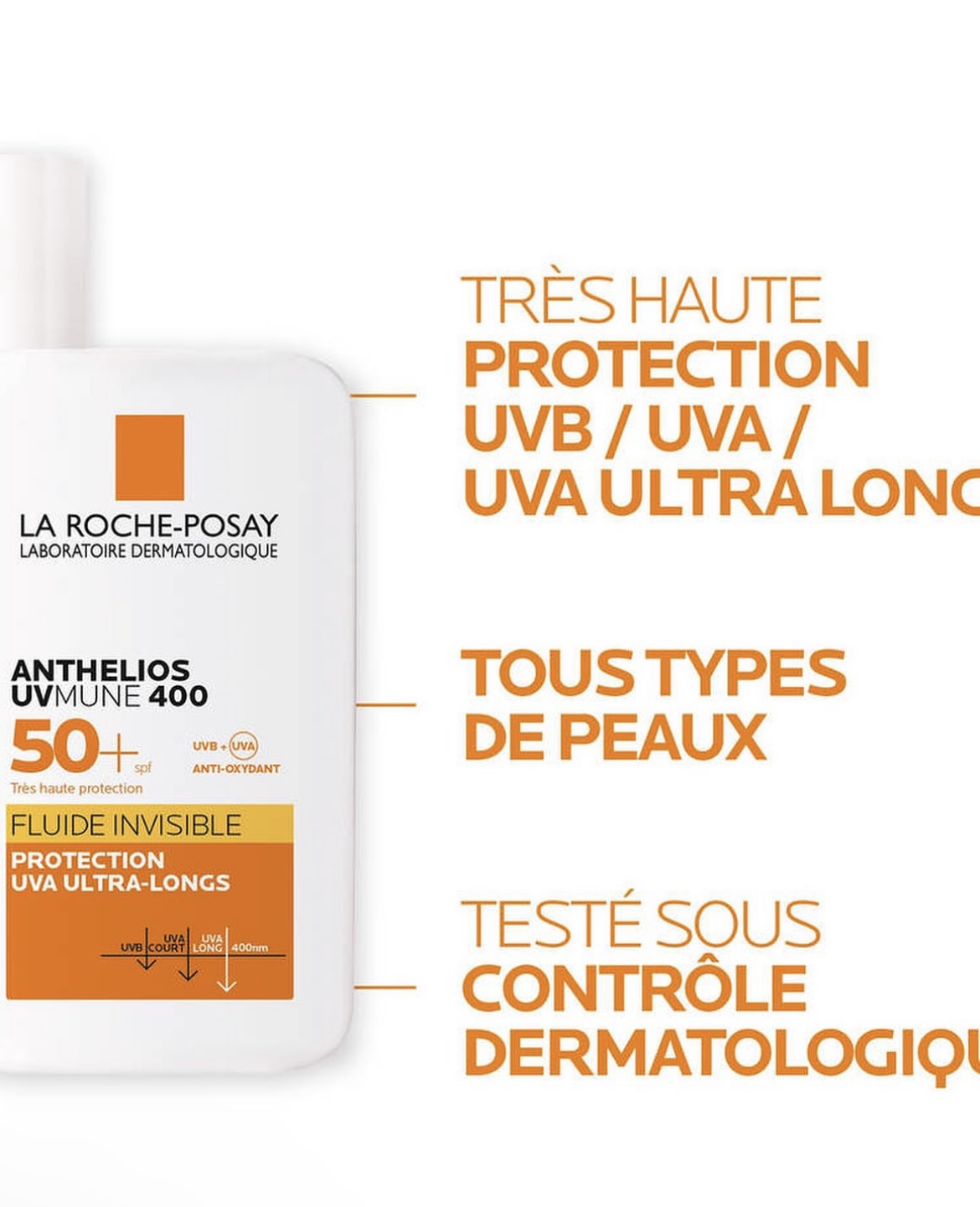 Le Fluide Invisible SPF 50+ de la gamme La Roche-Posay Anthelios offre une très haute protection solaire adaptée aux peaux sensibles et sujettes aux intolérances au soleil. Il convient également en cas d’ensoleillement intense et aide à prévenir l’apparition des taches pigmentaires liées au soleil.