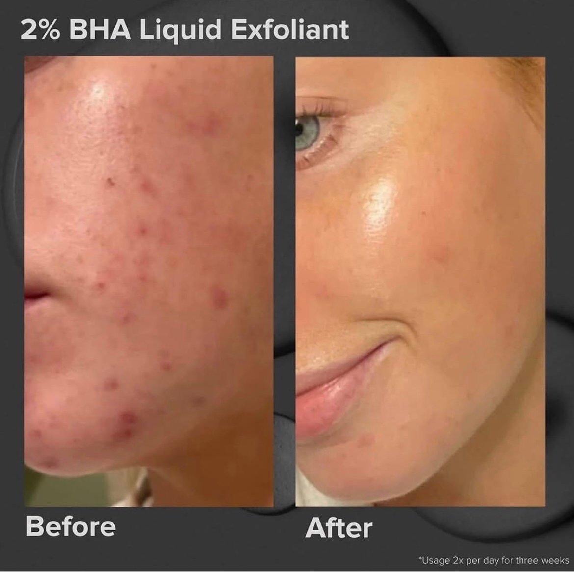 Avec 2 % de BHA (acide bêta-hydroxy) élimine les couches accumulées de peau pour un teint lisse et uniforme.